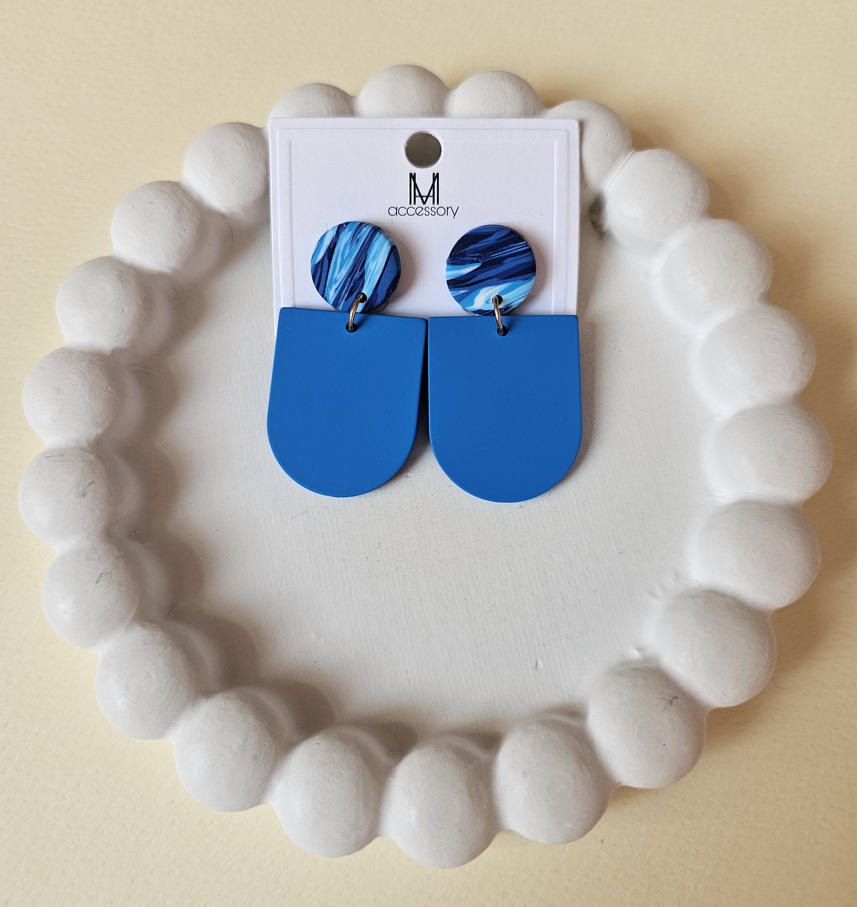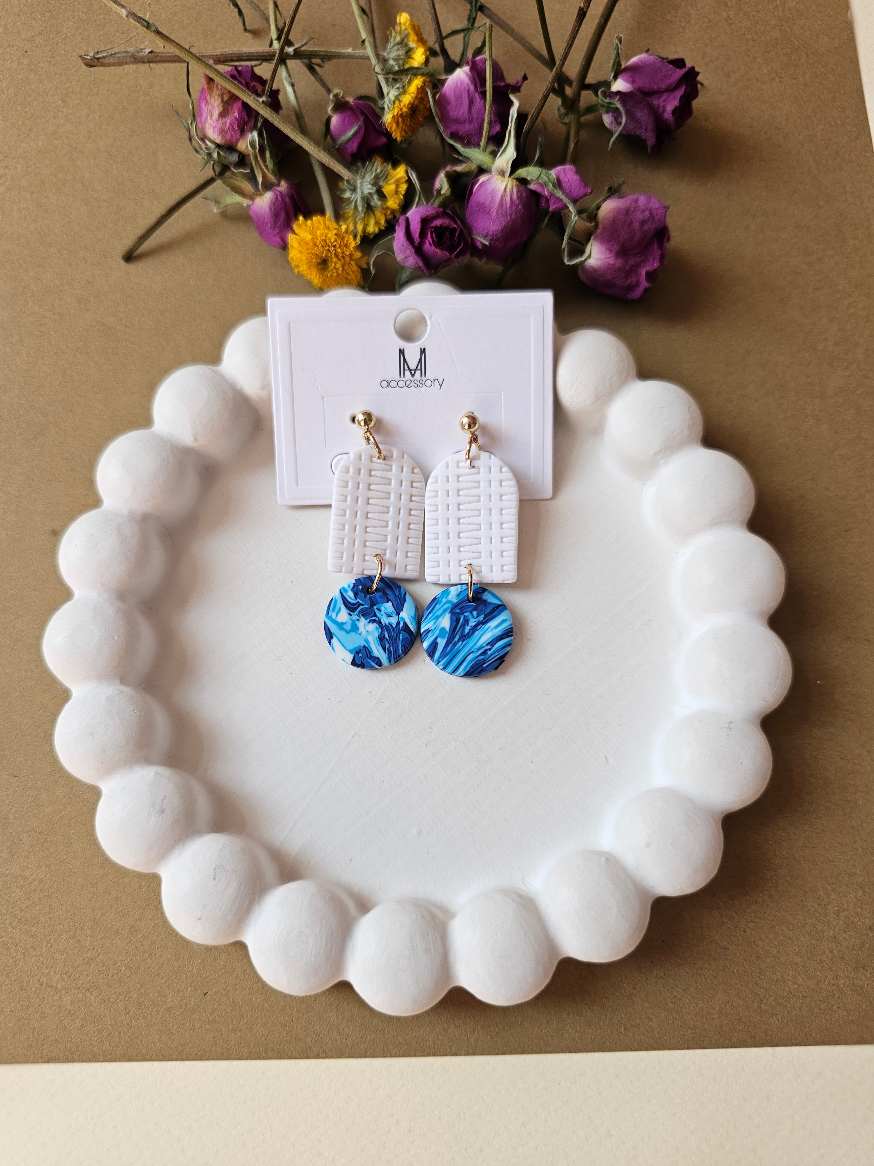 گوشواره فانتزی سفید و آبی 😍کاری هنری و خاص از دل هندسه های زیبا 😍آویدخت شاپ