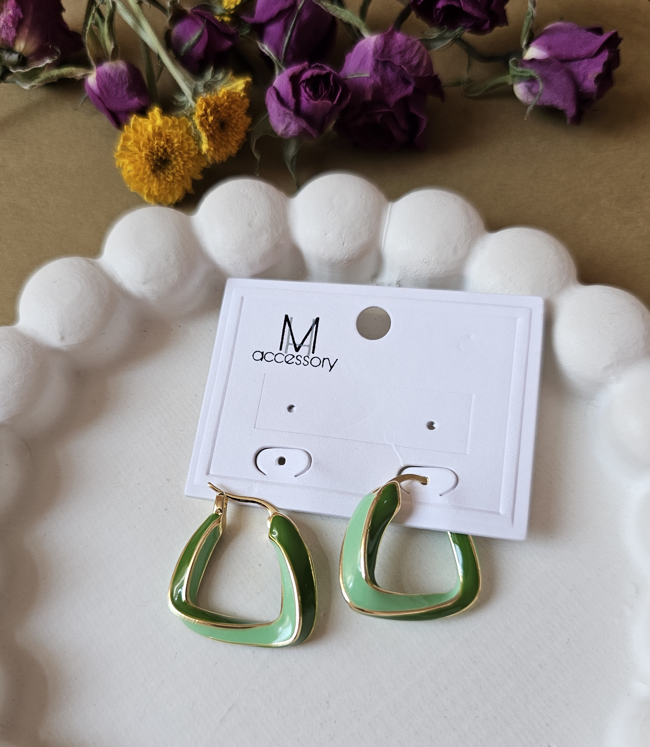 ناموجود گوشواره میناکاری سبز رنگ 🥰 با قفل راحت 😌 میخ ضد حساسیت🌿طرحی ماندگار از آویدخت شاپ تهیه کن😍