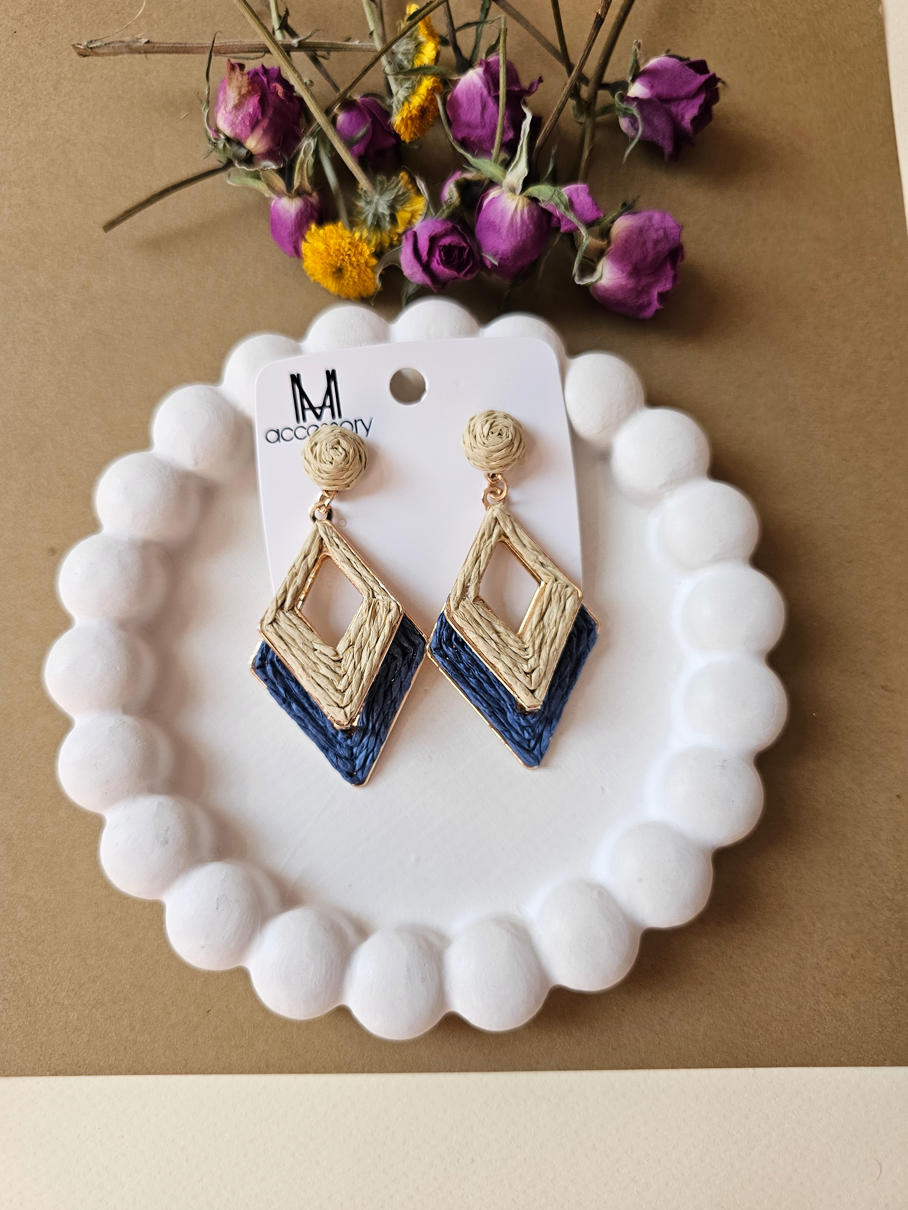 گوشواره حصیری سرمه ای رنگ 😍کاری با کیفیت عالی و نمای فوقالعاده 🥰مناسب خانمهای شیک 😍آویدخت شاپ