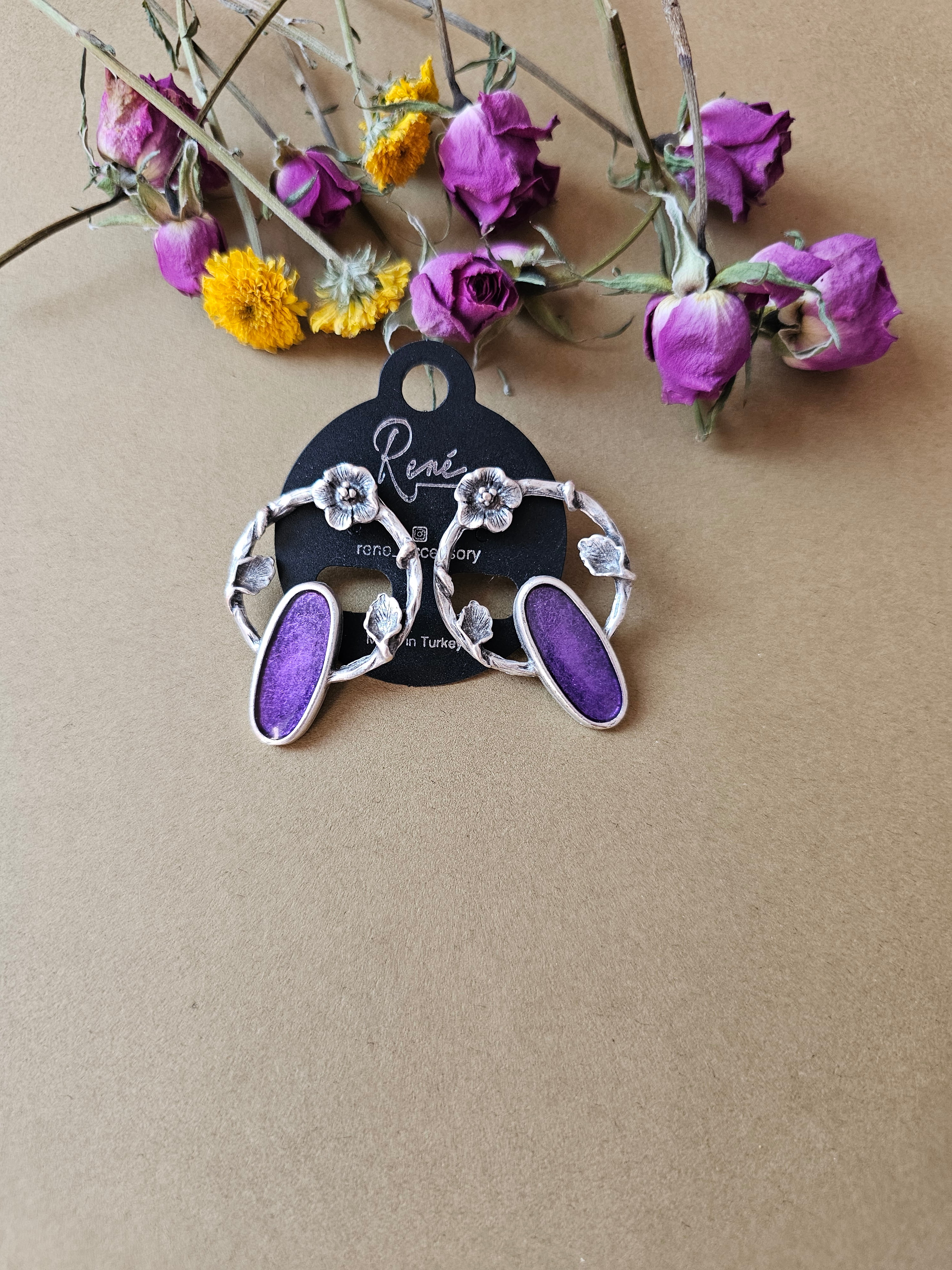 گوشواره میناکاری رنگی بنفش و یاسی ۳😍🌸گوشواره ای زیبا و راحت برای استفاده ی مداوم 😍ضدحساسیت💎ارزشمند از آویدخت شاپ😌🌿