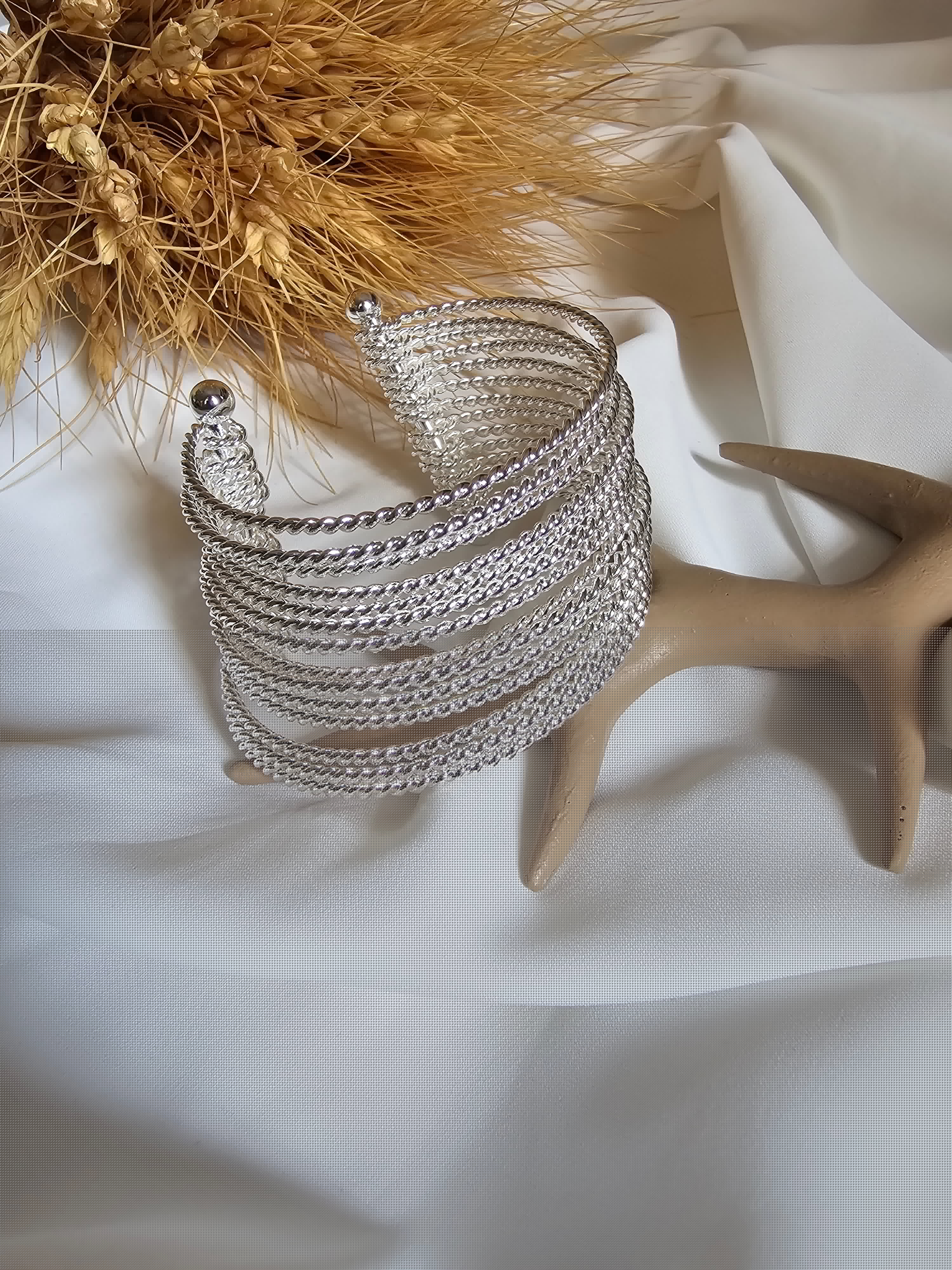 بنگل النگویی پیچی نقره ای آبکاری نقره با کیفیت عالی فری سایز