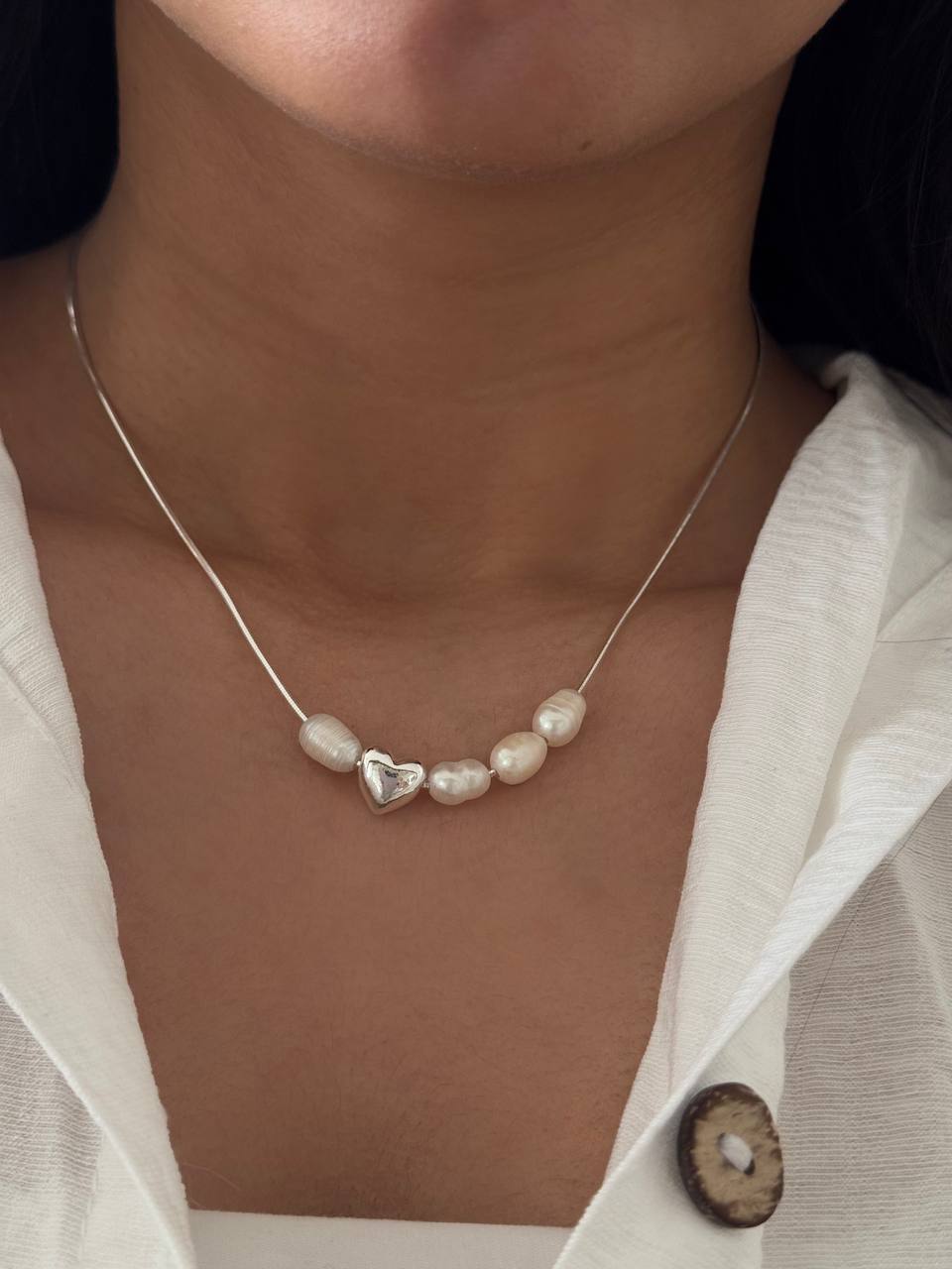 گردنبند مینیمال آبکاری نقره ۹۲۵ قلب و مروارید .مرواریدهاش پرورشی بدون پوسته ریزی و ماندگار رنگ ثابت