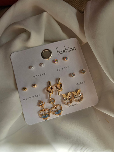 پک گوشواره هفت تایی 😇ضدحساسیت رنگ ثابت