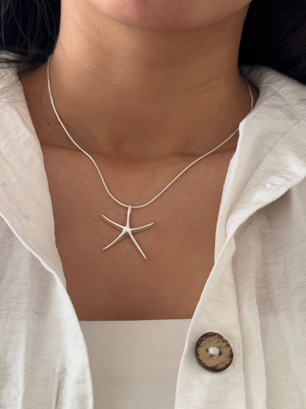 گردنبند ستاره دریایی آبکاری نقره 🥰مینیمال و رنگ ثابت با آبکاری عالی