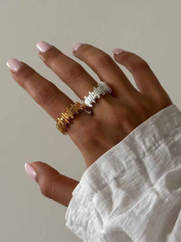 انگشتر مینیمال تاج خطی آبکاری قوی