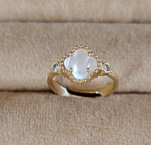 انگشتر پروانه مروارید دار طلایی آبکاری رادیوم قوی درجه یک یه طراحی ظریف و خاص فری سایز مناسب استفاده در مجالس از آویدخت تهیه کن