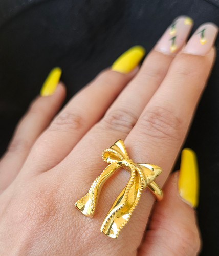 انگشتر پاپیونی بلند طلایی 🥰🎀آبکاری قوی ترندی زیبا و فری سایز 🎀آویدخت شاپ