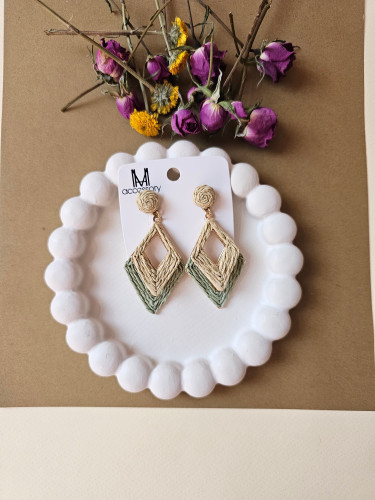 گوشواره حصیری سبز 🥰❤️کاری زیبا با کیفیت فوق العاده 🌿آویدخت شاپ
