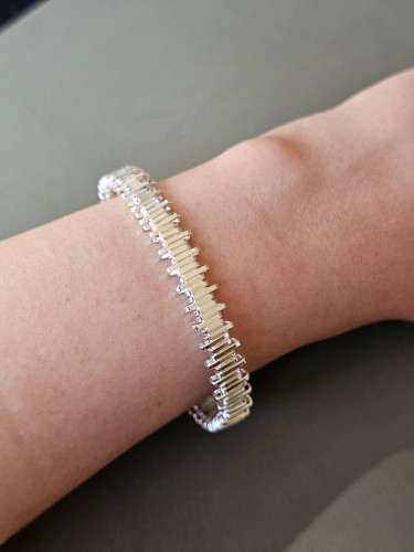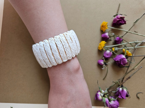 بنگل سفید موج دار ☺️فری سایز مناسب استفاده برای انواع استایل 🍒با کیفیت عالی 👍 آویدخت شاپ❤️