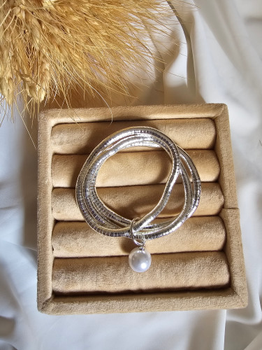 دستبند آبکاری نقره کشی سه رج با آویز مروارید