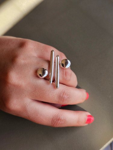 انگشتر مینیمال دو خط نقطه ای فری سایز 😊 آبکاری نقره رنگ ثابت