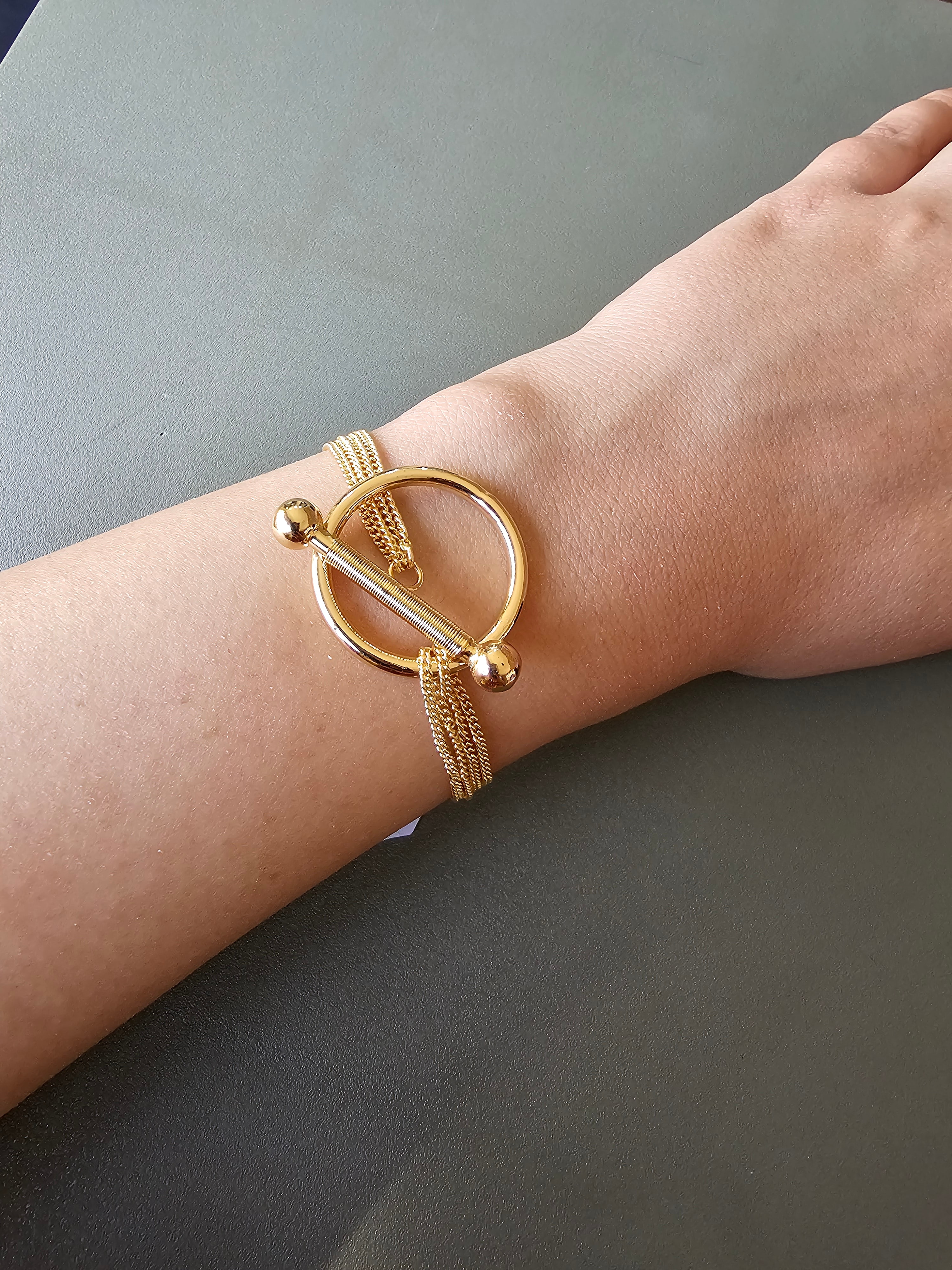 دستبند طلایی استیل قفل تی 🥰مشابه طلا کیفیت و ظاهر با طلا مو نمیزنه